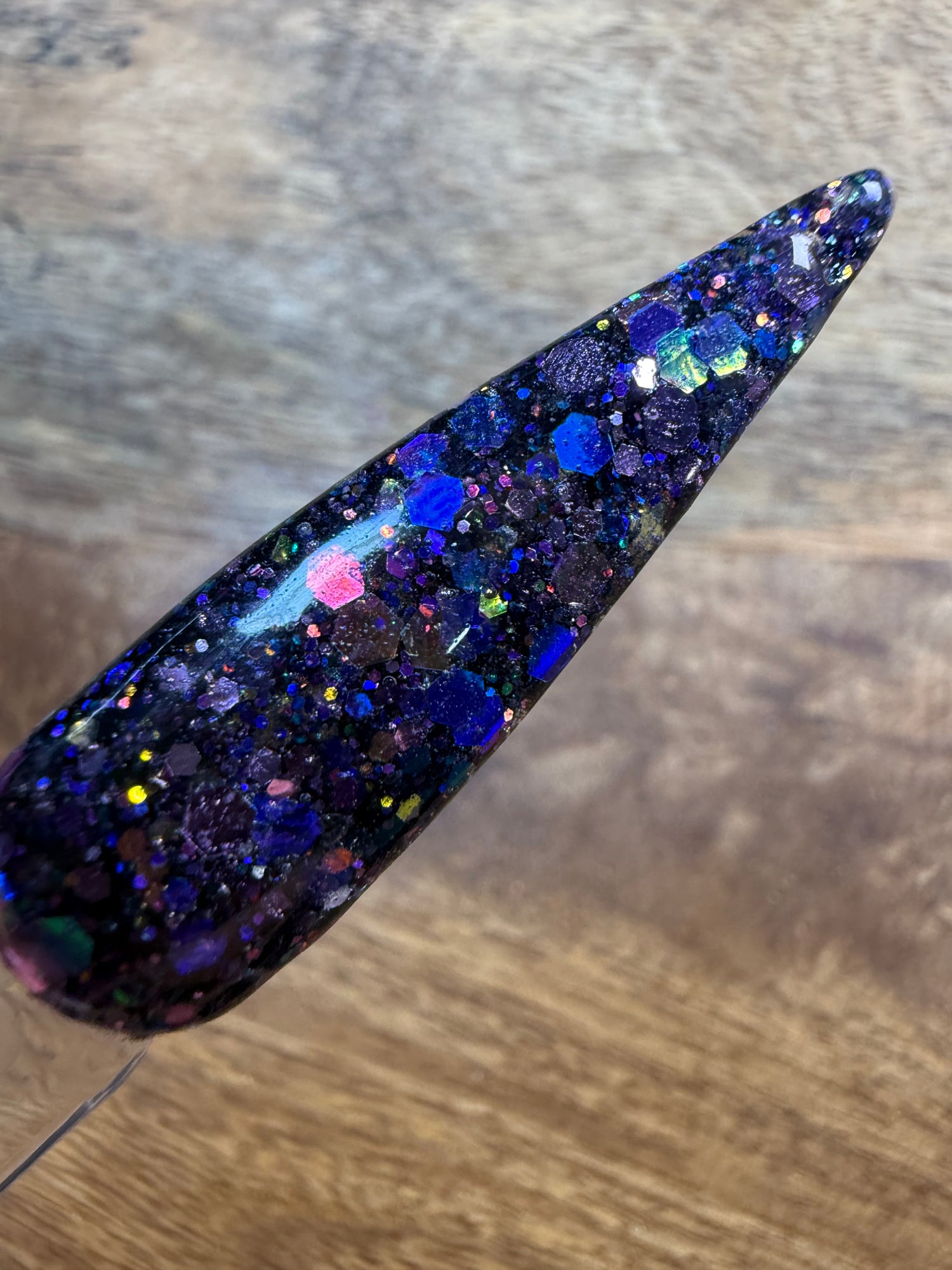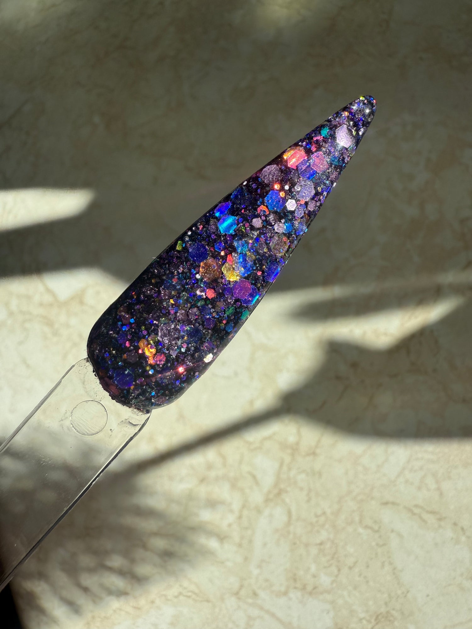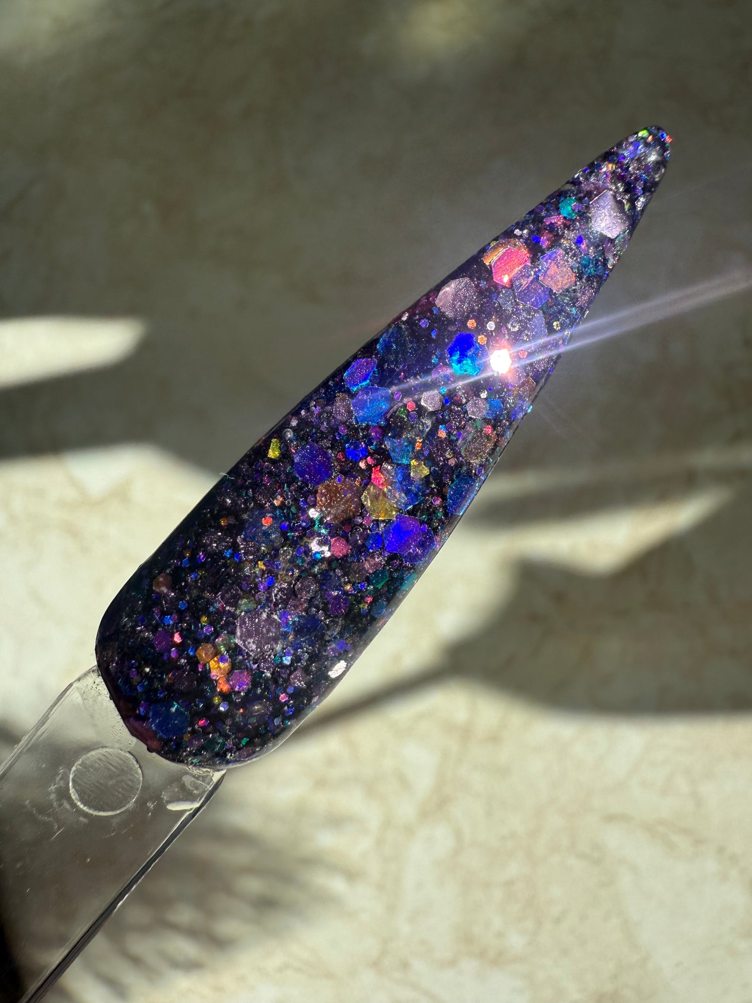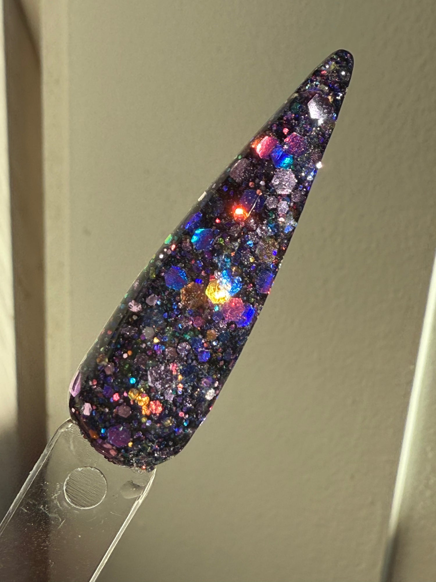 Colour: black base with shifting chunky glitters