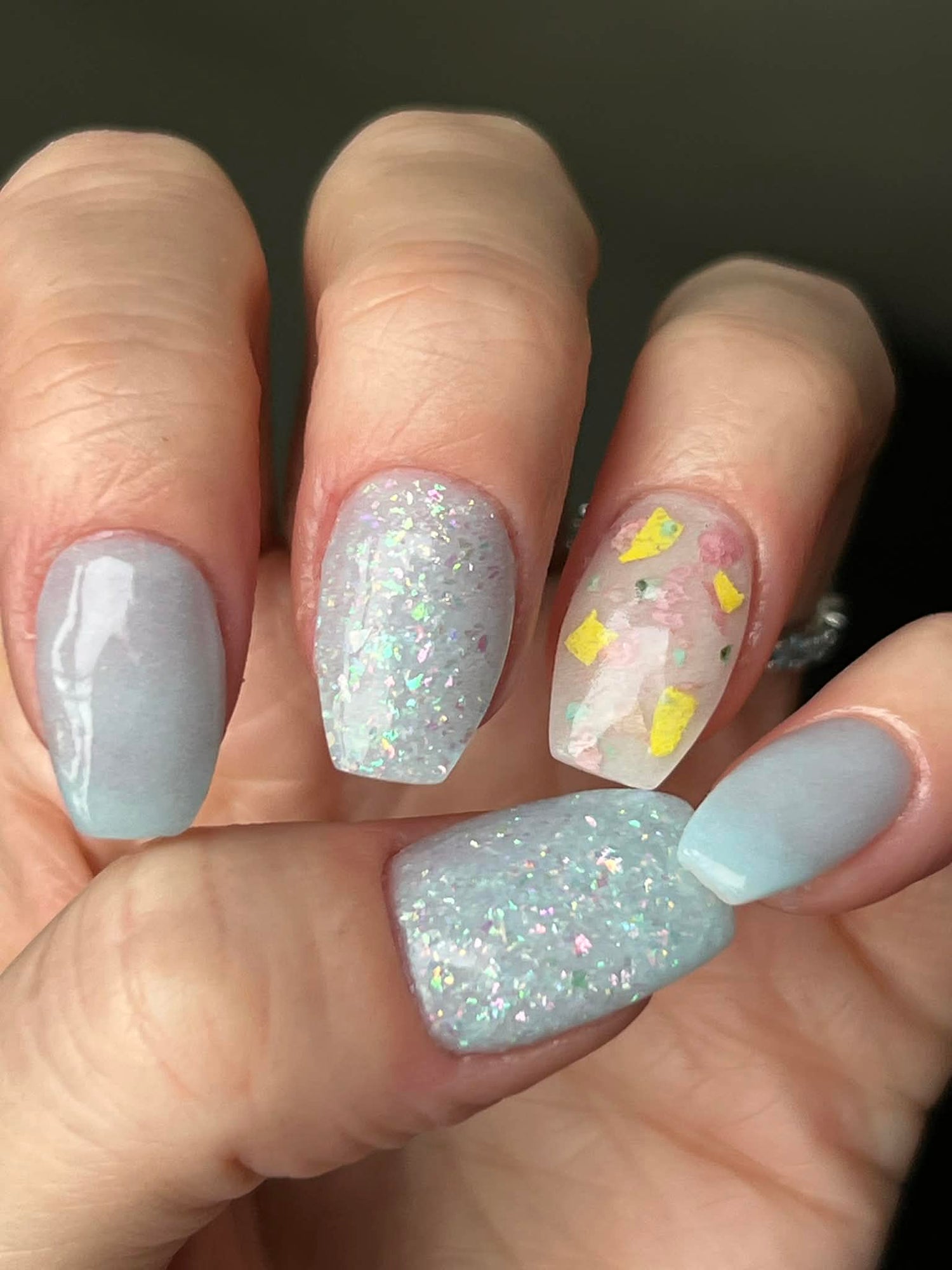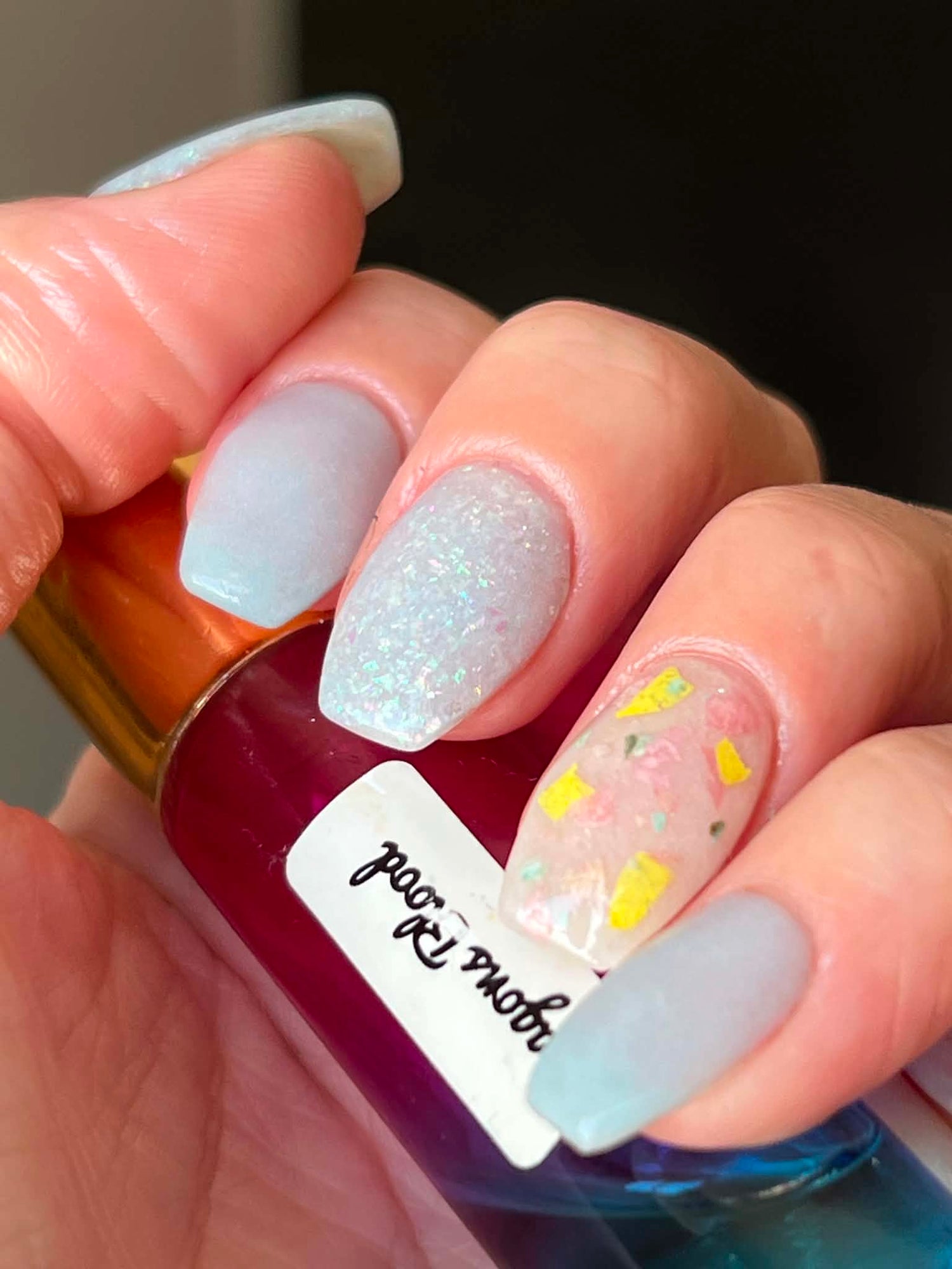 Topping with clear dip is strongly recommended. These swatches show 2 dips.