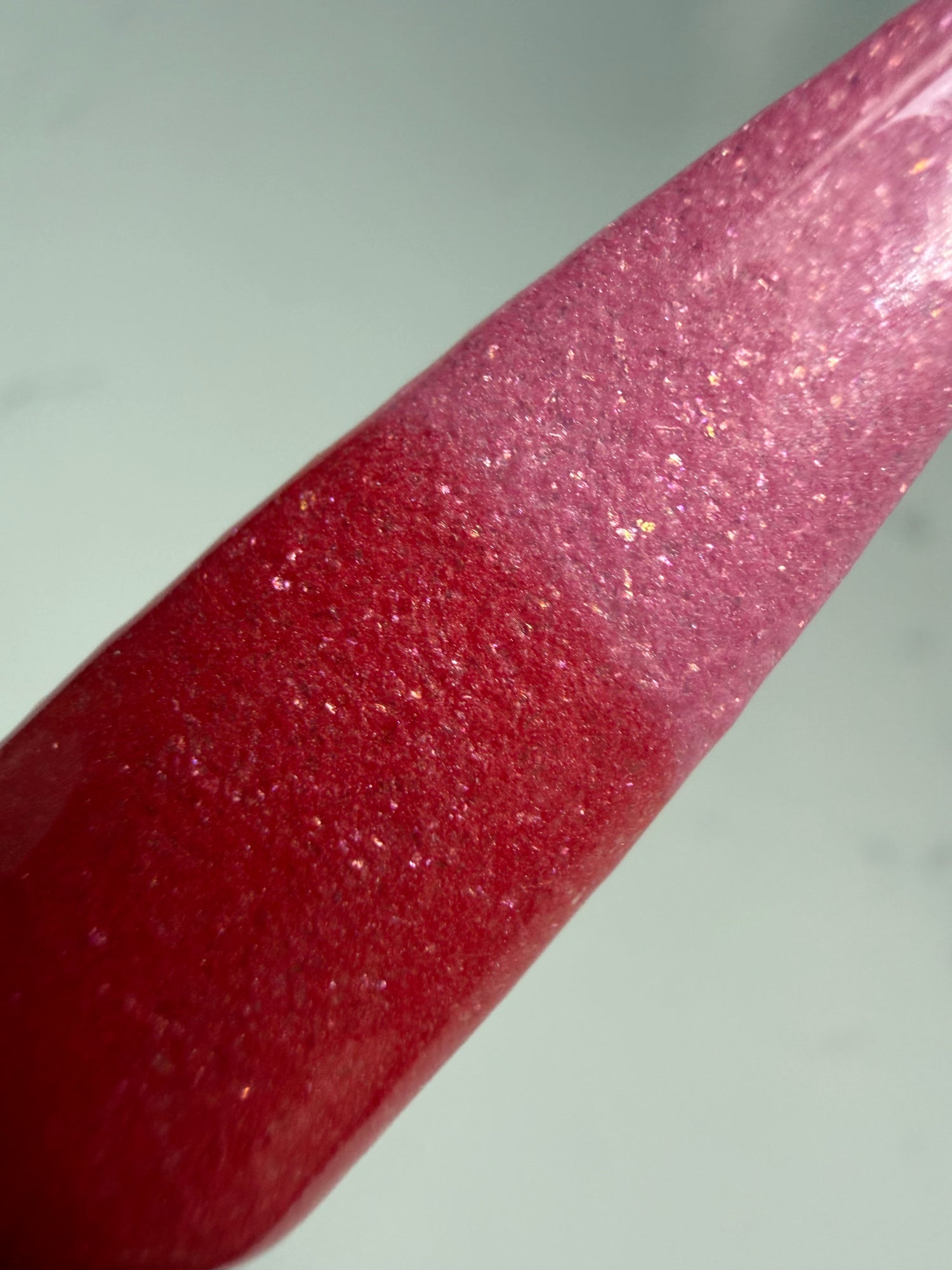 Colour: dark coral/reddish pink - bubblegum pink with golden shimmer (changes colors with heat and cold)