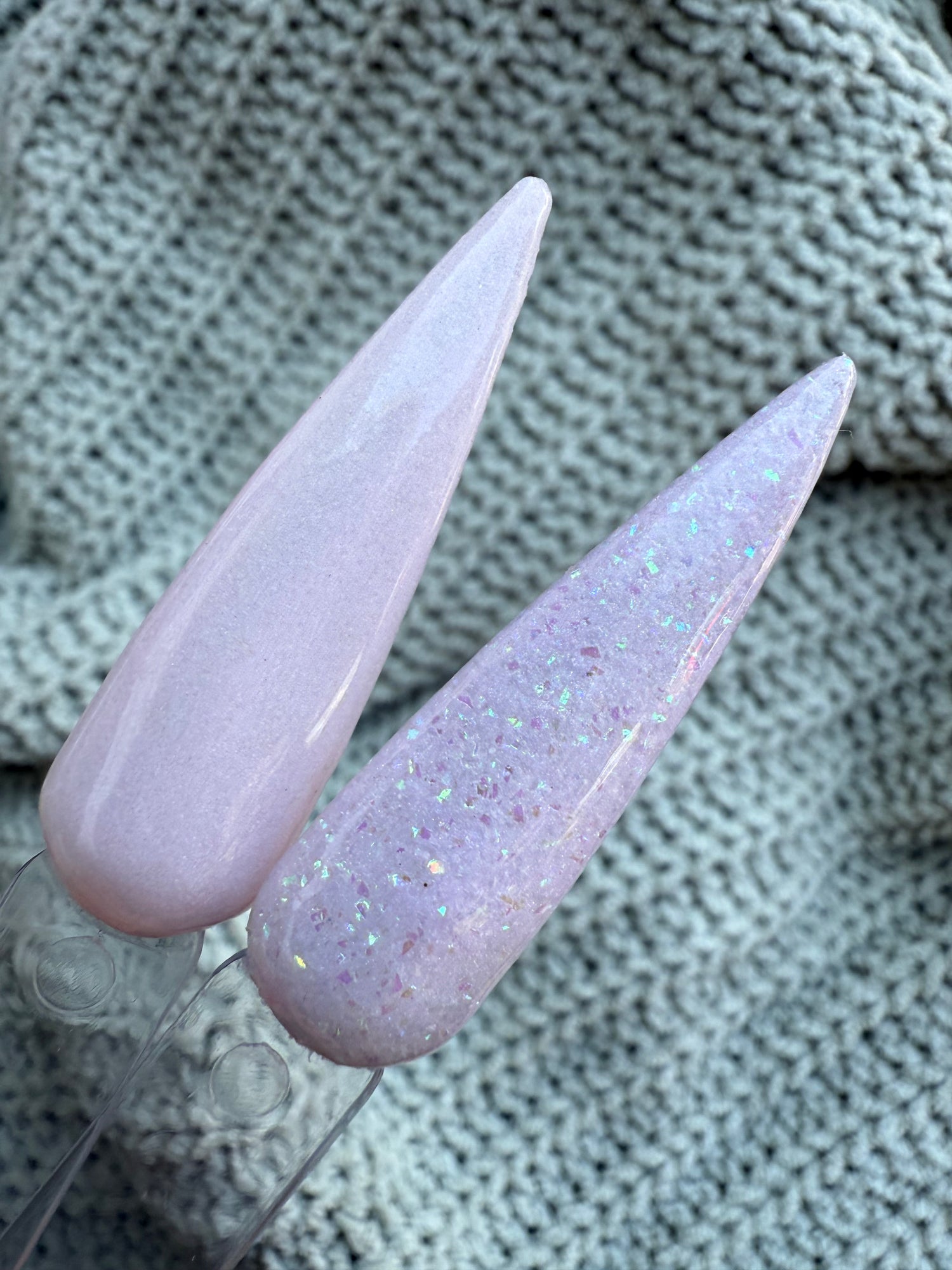 Colour: light pink base with iridescent flake glitter