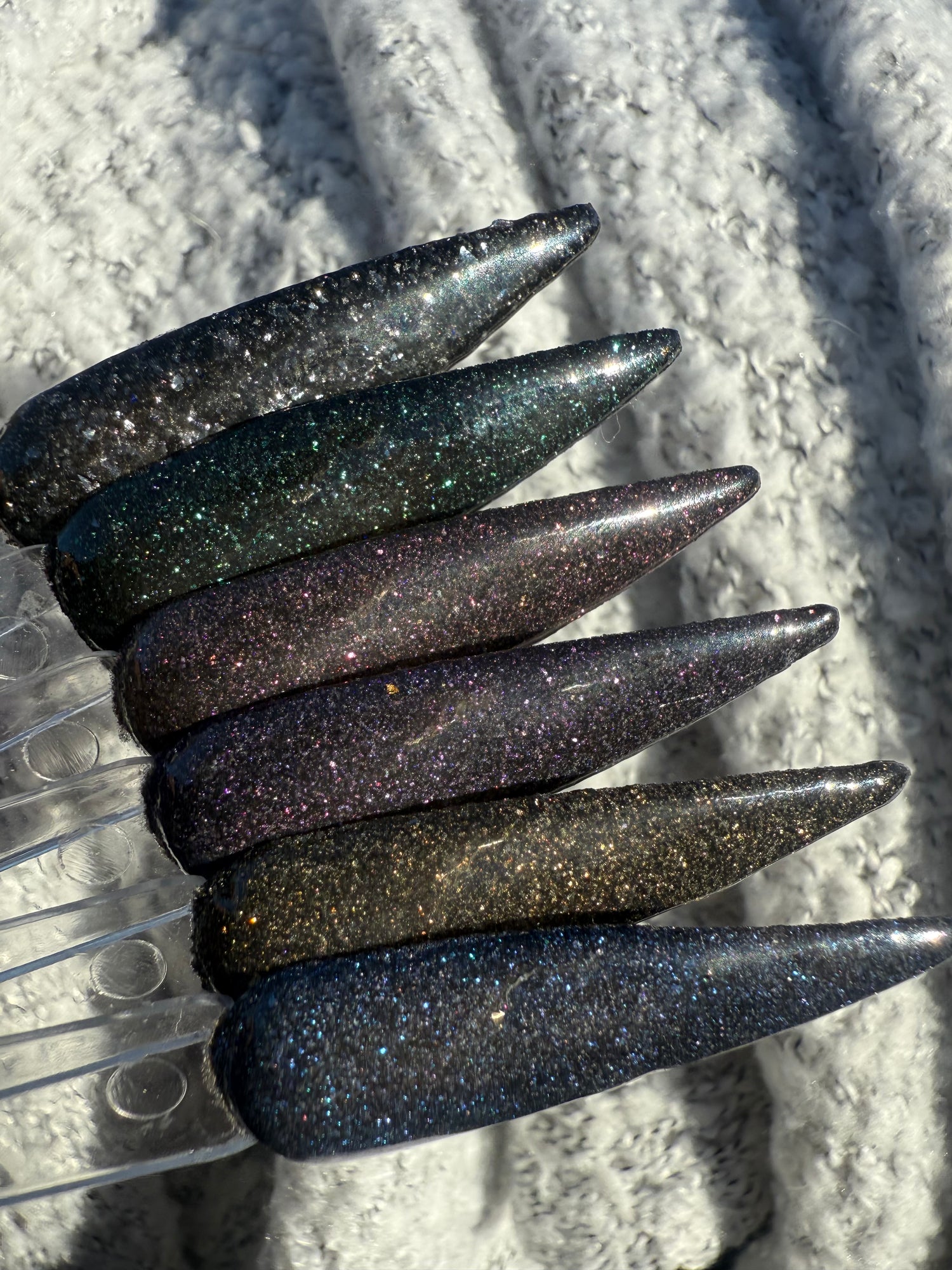 Topping with clear dip is strongly recommended. These swatches show 2 dips.