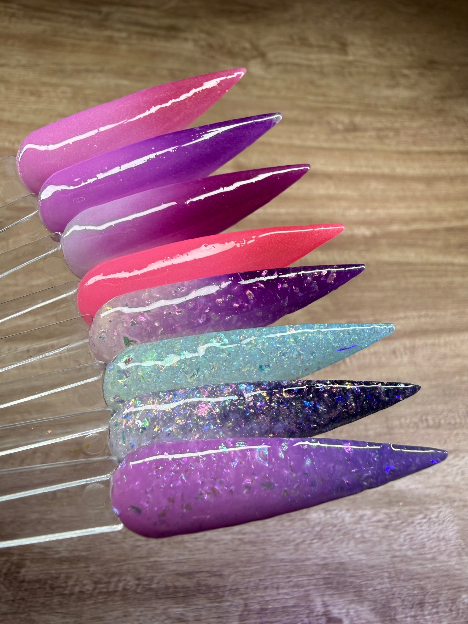Topping with clear dip is strongly recommended. These swatches show 2 dips.