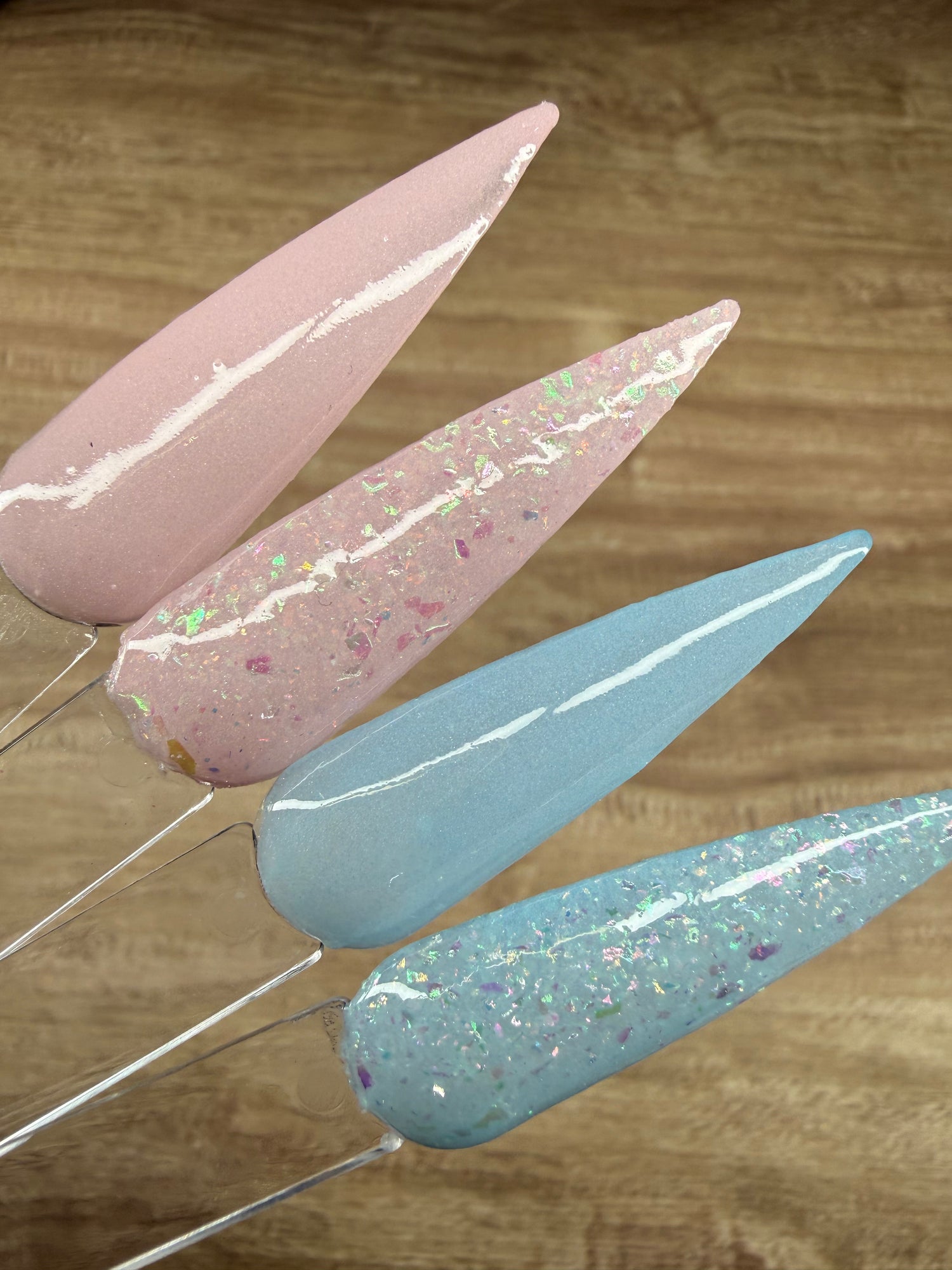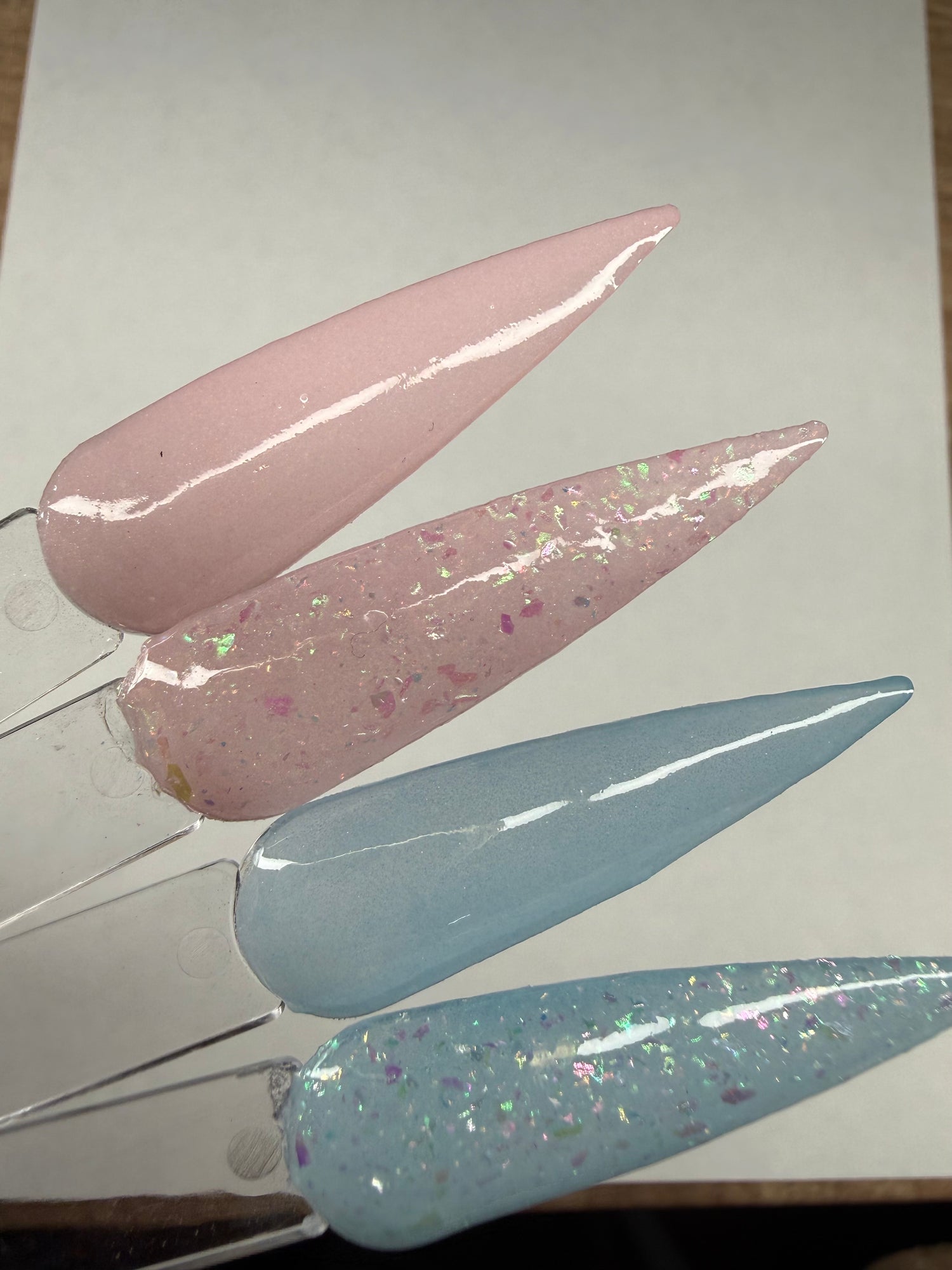 Topping with clear dip is strongly recommended. These swatches show 2 dips.