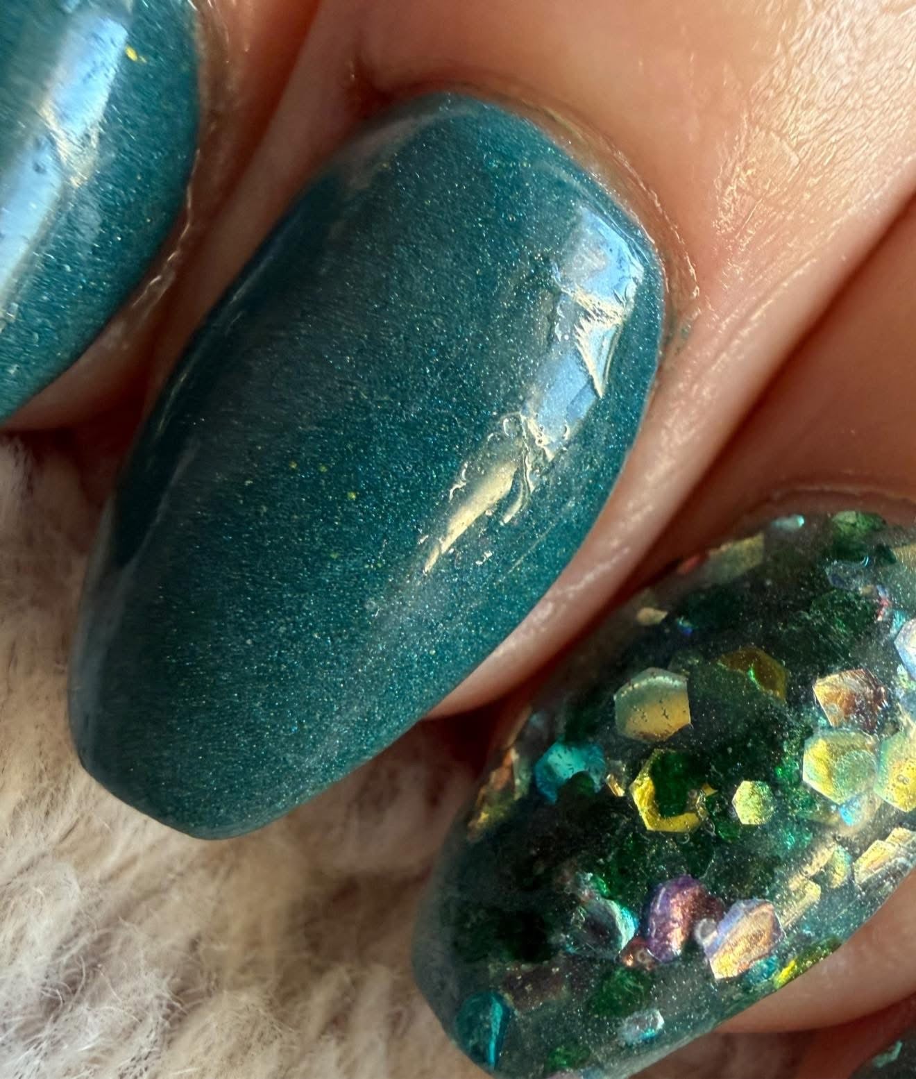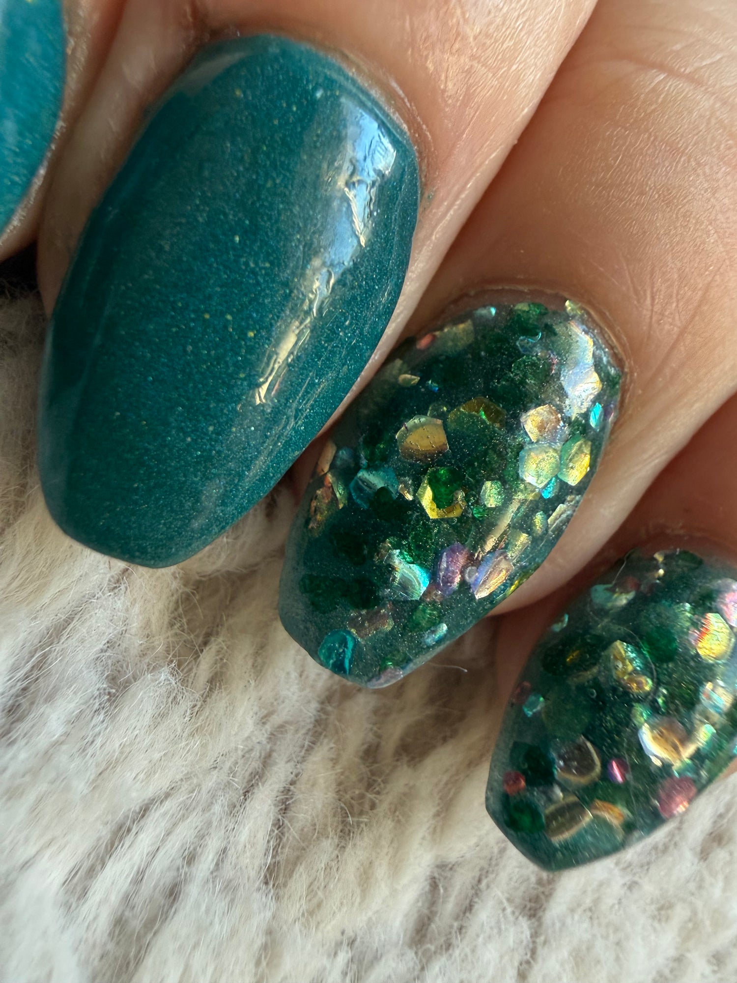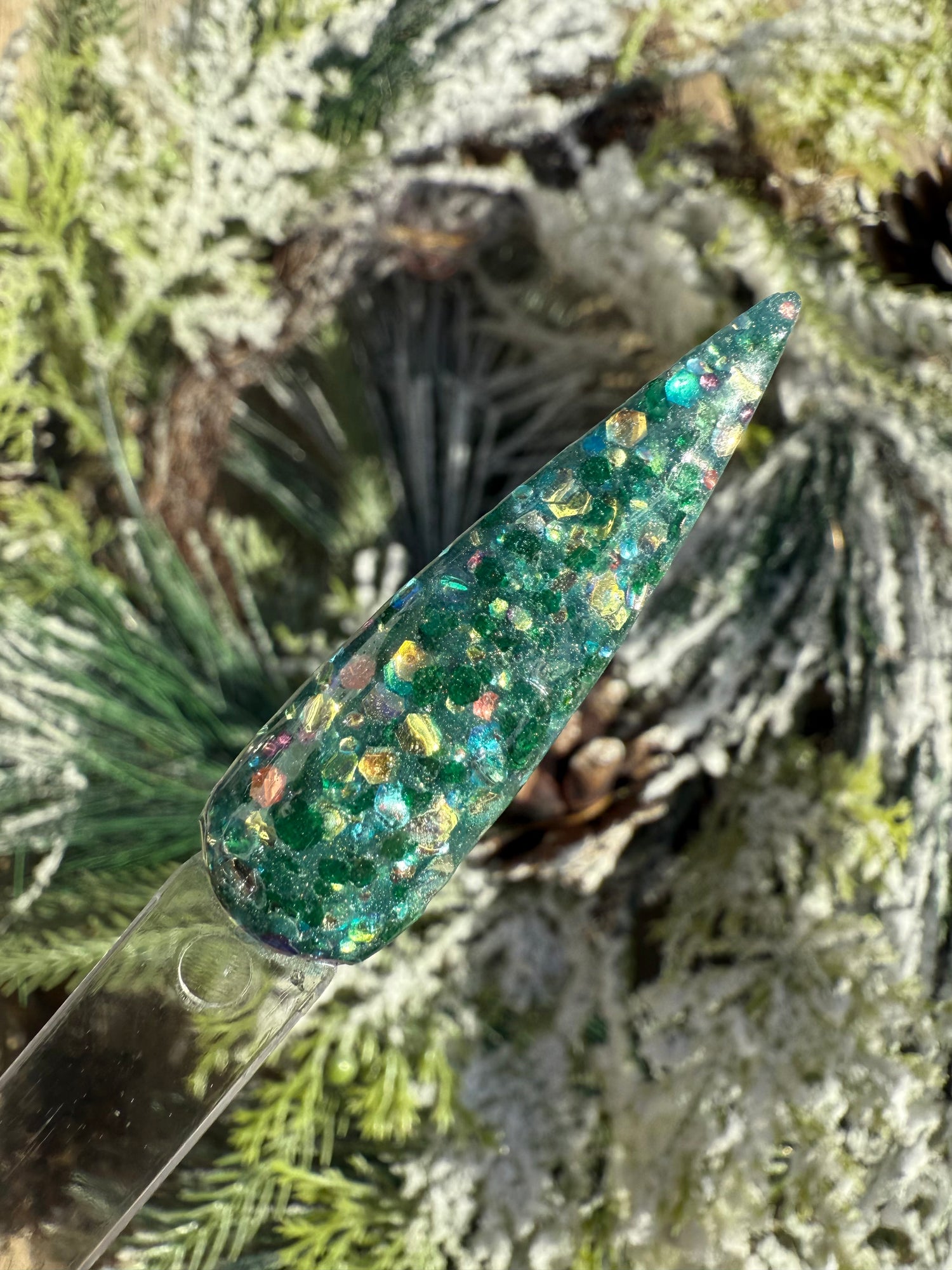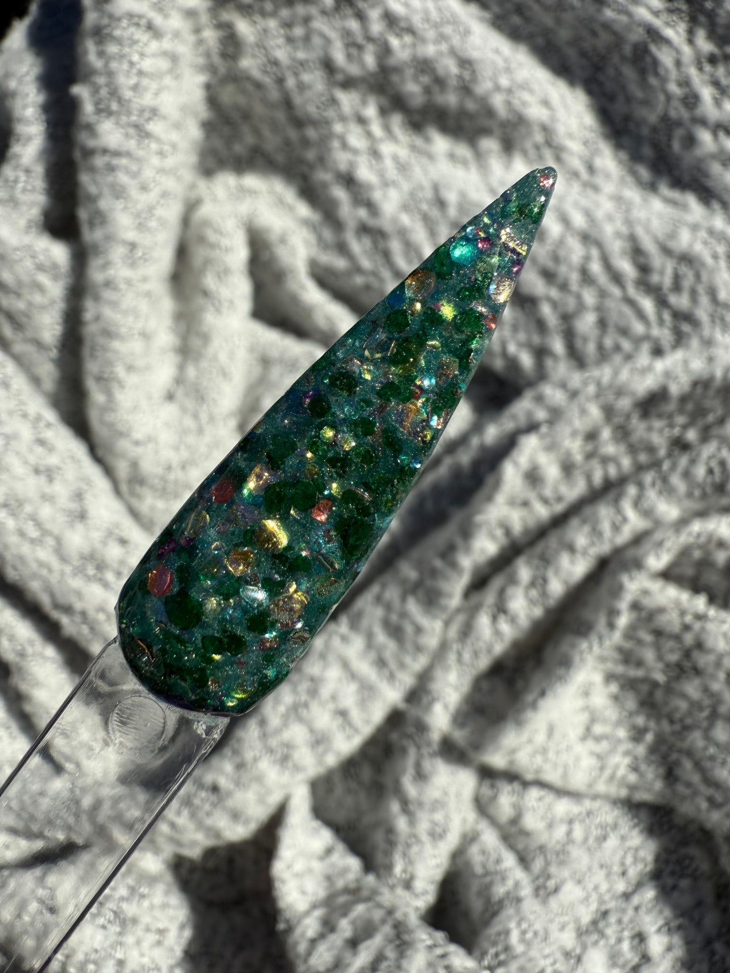 Colour: green base with green mica flakes and rhinestone glitter mix