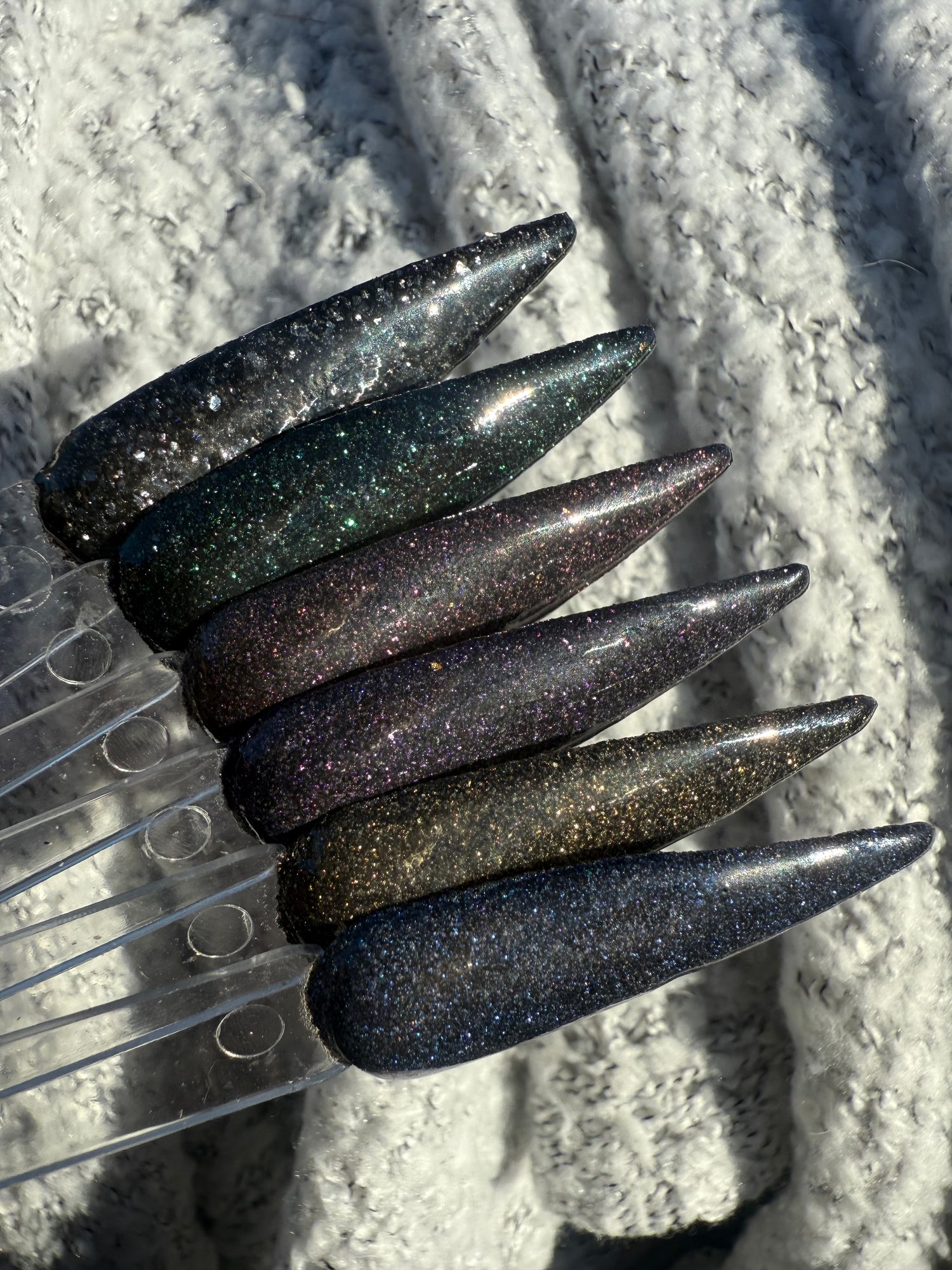 Topping with clear dip is strongly recommended. These swatches show 2 dips.