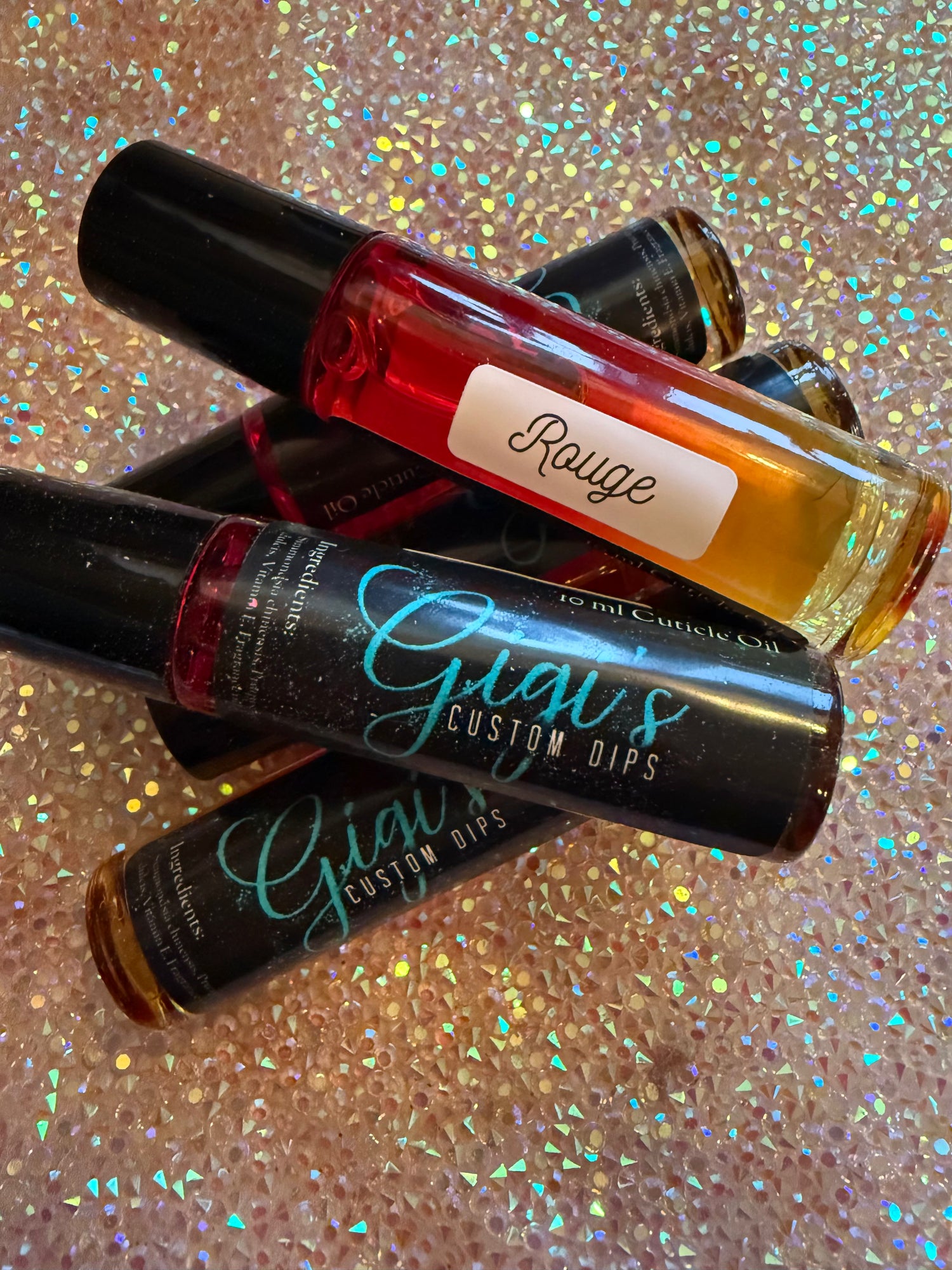 10 ml roller ball cuticle oil in the scent Rouge. Has deep notes of citrus with saffron, and woodsy florals.