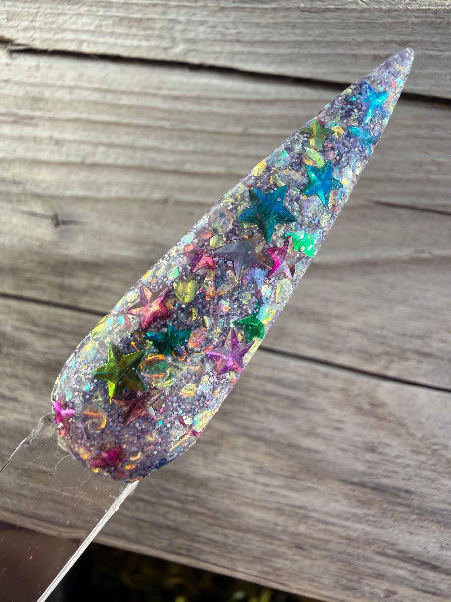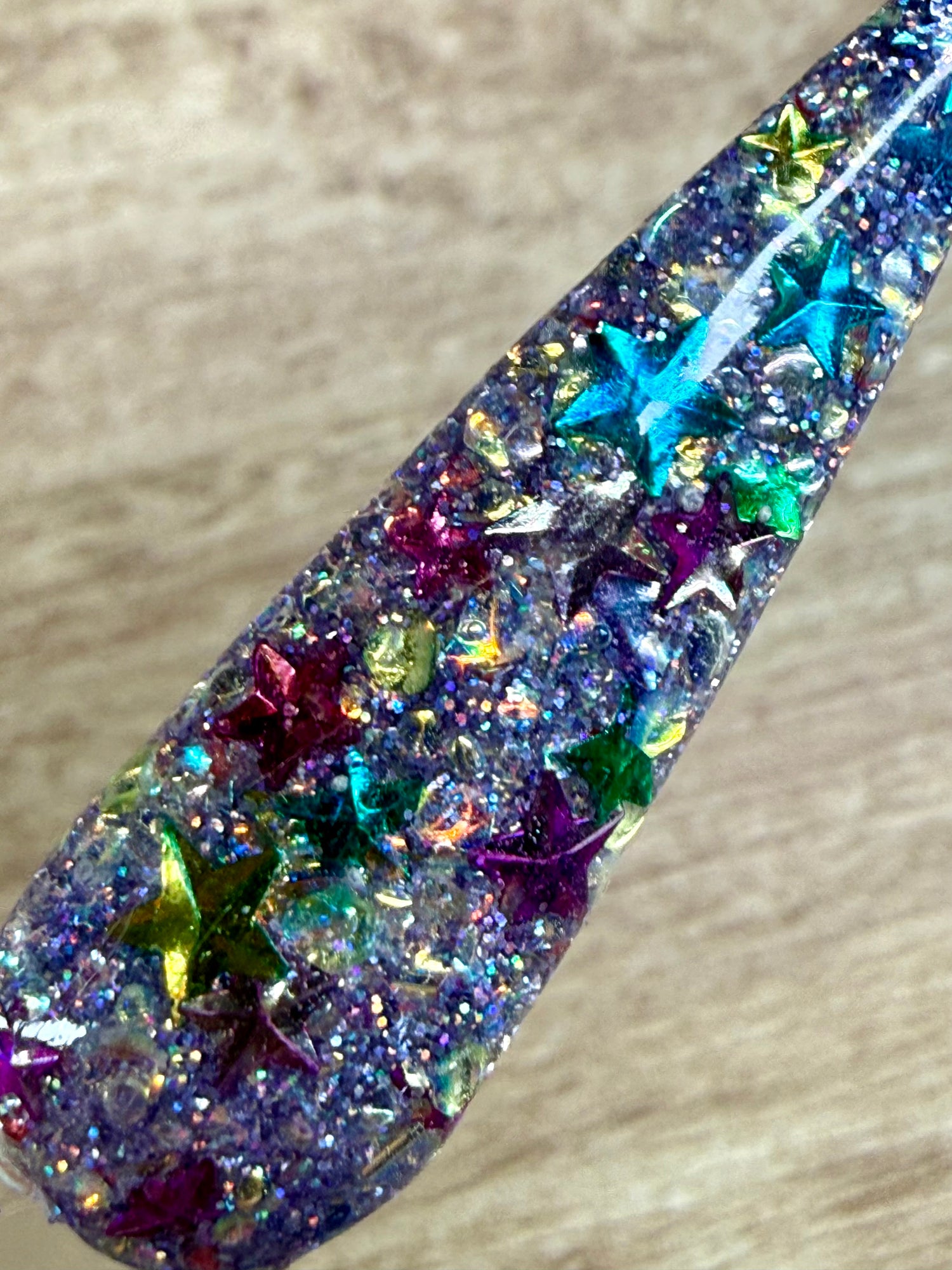 Colour: purple holo/rhinestone/3d star glitters
